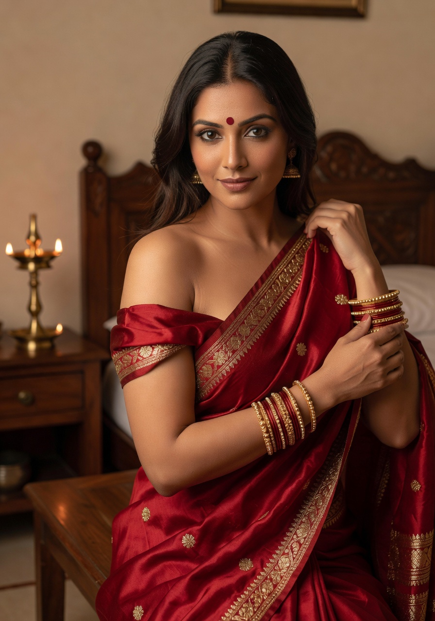 Imagine the allure of a traditional Indian beauty as Pooja from Pune captivates in her elegant saree, blending the timeless charm of Indian culture with a hint of playful seduction. This gallery showcases Pooja, a stunning bhabhi-like figure with an irresistible aura, as she slowly unveils the layers of her vibrant attire. The way the soft fabric drapes over her form creates an enchanting tease, drawing you into a world where every fold and curve whispers promises of hidden desires. With natural keywords like saree and traditional Indian elegance at the forefront, this collection highlights the sensual art of undressing, making it a must-see for those who appreciate the subtle thrill of a wife's private moments.
