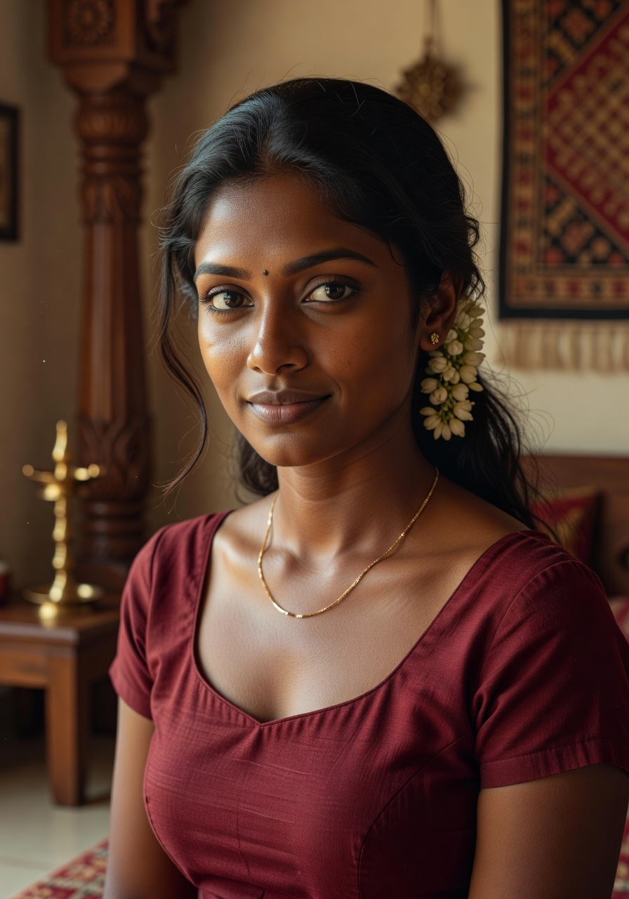 Immerse yourself in the enchanting world of South Indian sensuality with Reena's captivating gallery, where traditional charm meets modern allure from the vibrant city of Chandigarh. As a stunning representative of South Indian beauty, Reena embodies the exotic essence of regions like Tamil Nadu and Kerala, her dark-skin tone glowing under soft lights that highlight her graceful curves and mysterious expressions. This collection of 10 intimate photos showcases her in poses that blend cultural heritage with playful seduction, drawing from traditional Indian attire that subtly reveals her natural elegance. Whether it's the way she drapes a silken sari or strikes a pose inspired by ancient Kerala dance forms, every image invites you to explore the depth of Indian femininity in a way that's both teasing and timeless.
